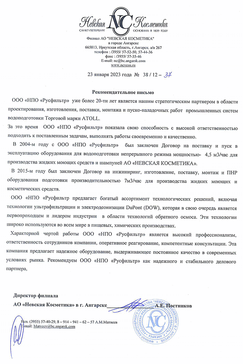 Водоподготовка для парфюмерных и косметических производств