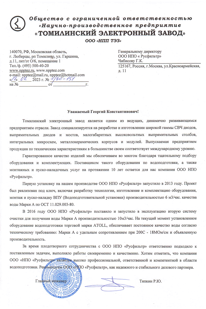 Русфильтр – ваш надежный партнер в области промышленной водоподготовки! Мы предлагаем комплексные решения, разработанные специально под ваши потребности, с учетом всех особенностей вашего бизнеса.